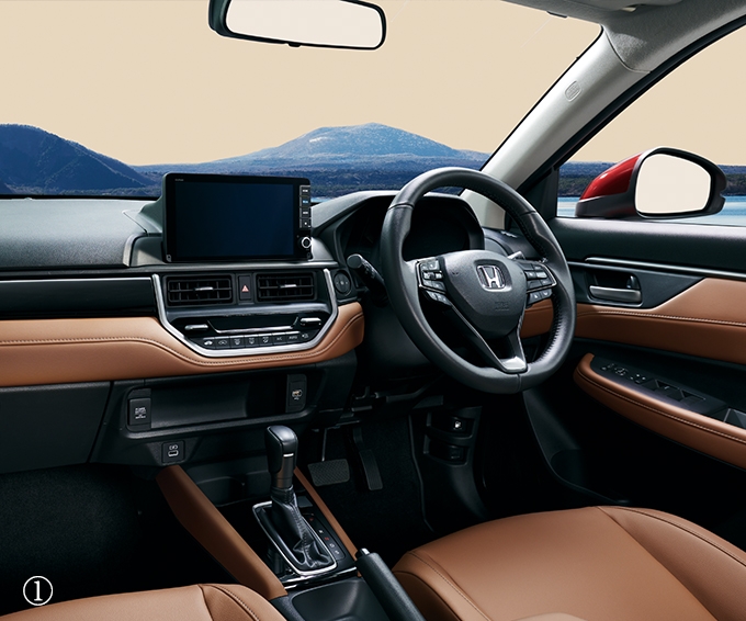 Photo①~③:WR-V Z+ 車両本体価格の一例(消費税10%込み)2,549,800円★表記の価格には写真の有料色およびディーラーオプションの価格は含まれておりません。 Photo①②:ボディーカラーはイルミナスレッド・メタリック(有料色:38,500円高)、ディーラーオプション(9インチ Honda CONNECTナビ LXM-242ZFNi:207,900円[取付アタッチメント・パネルキット・デジタルTV用フィルムアンテナ・取付工賃別途])装着車